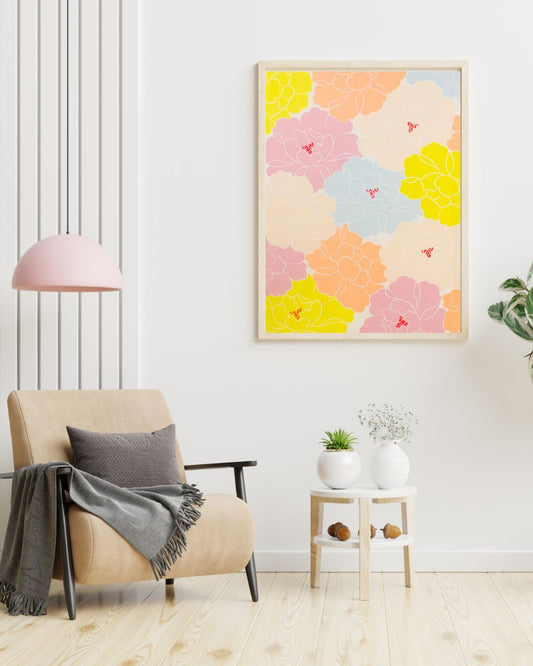 Furoshiki Adeline Klam Hime Musubi Peonies in organic cotton 100 cm
