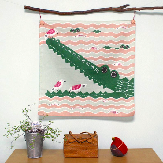 Furoshiki Kata Kata Musubi Crocodile and Birds in organic cotton 50 cm