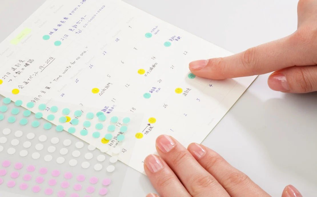 Each set includes stickers in three colors, ideal for visual organization: marking dates, structuring a bullet journal, indexing pages, or tracking daily routines. They can also be used for decorative purposes, on cards, or to create pointillist art compositions.