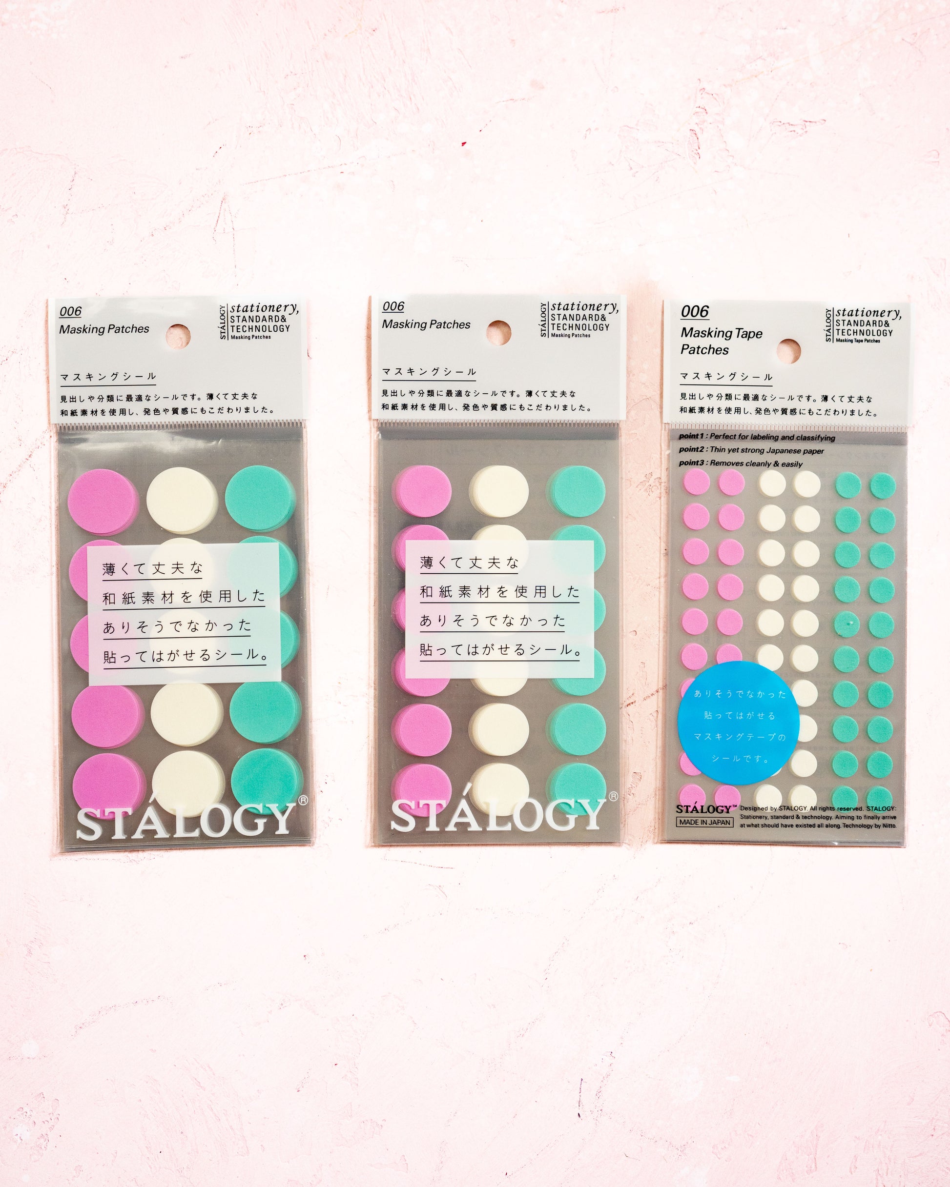 Stalogy Masking Patches are adhesive dots with a clean design, created to subtly organize, decorate, and structure your pages. Their minimalist aesthetic makes them a popular tool among journaling enthusiasts, designers, creatives, and lovers of Japanese stationery.