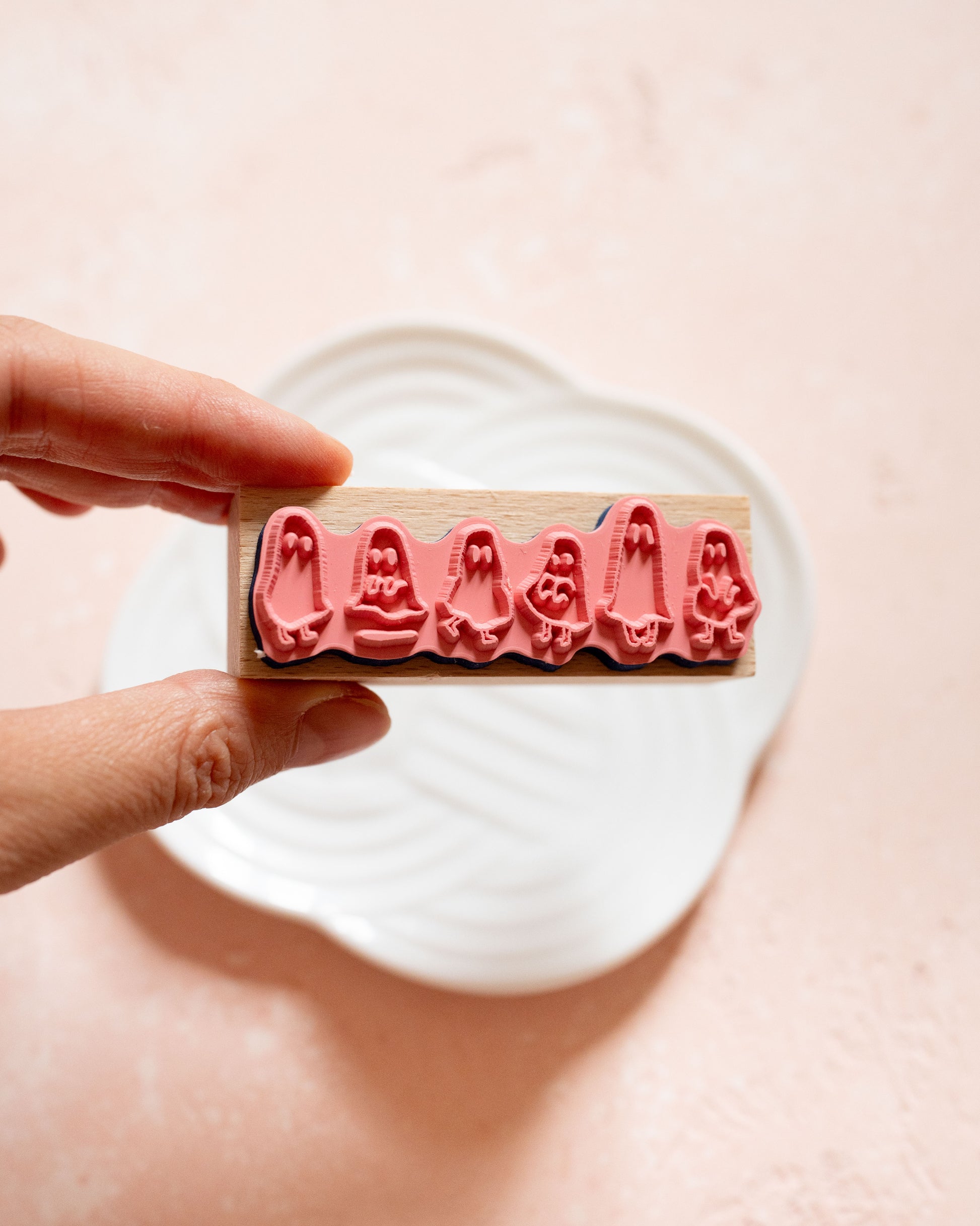 This wooden stamp featuring several little ghosts is perfect for adding a Halloween feel to your creations. Use it to decorate your journal pages, personalize cards, dress up your envelopes, or even adorn your treat bags for trick-or-treating . A fun design that will make young and old smile!