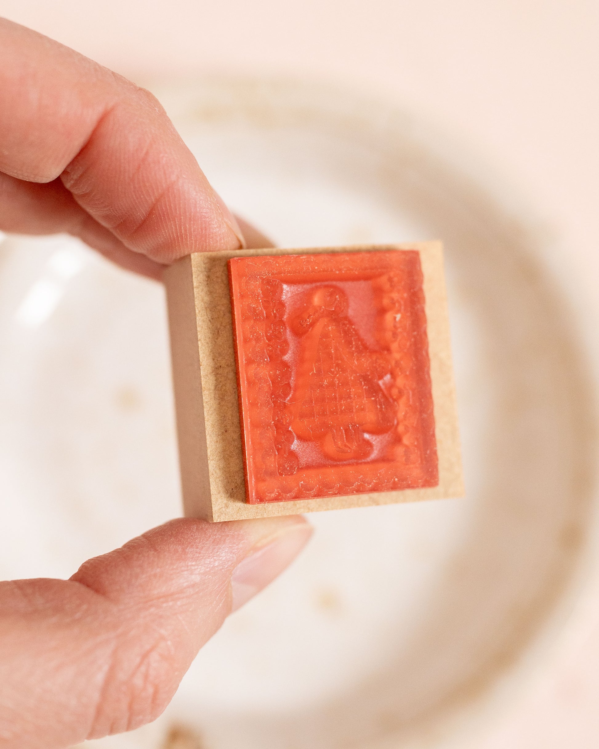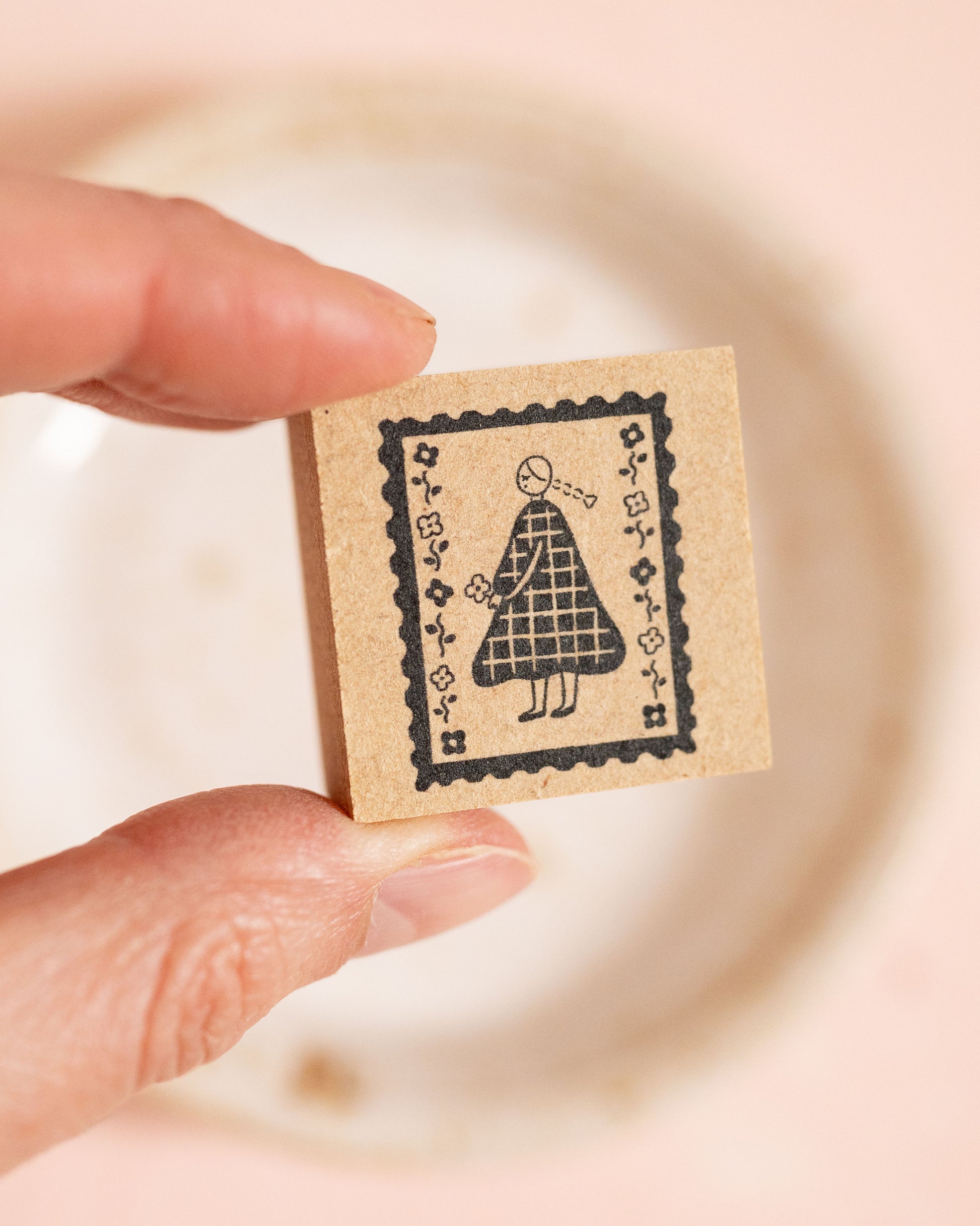 This stamp, imported directly from Japan, features Maru-Chan, an adorable character from the Stamp Marche collection. Here, she appears on a postage stamp. Ideal for personalizing your notebooks, planners, cards, or correspondence.