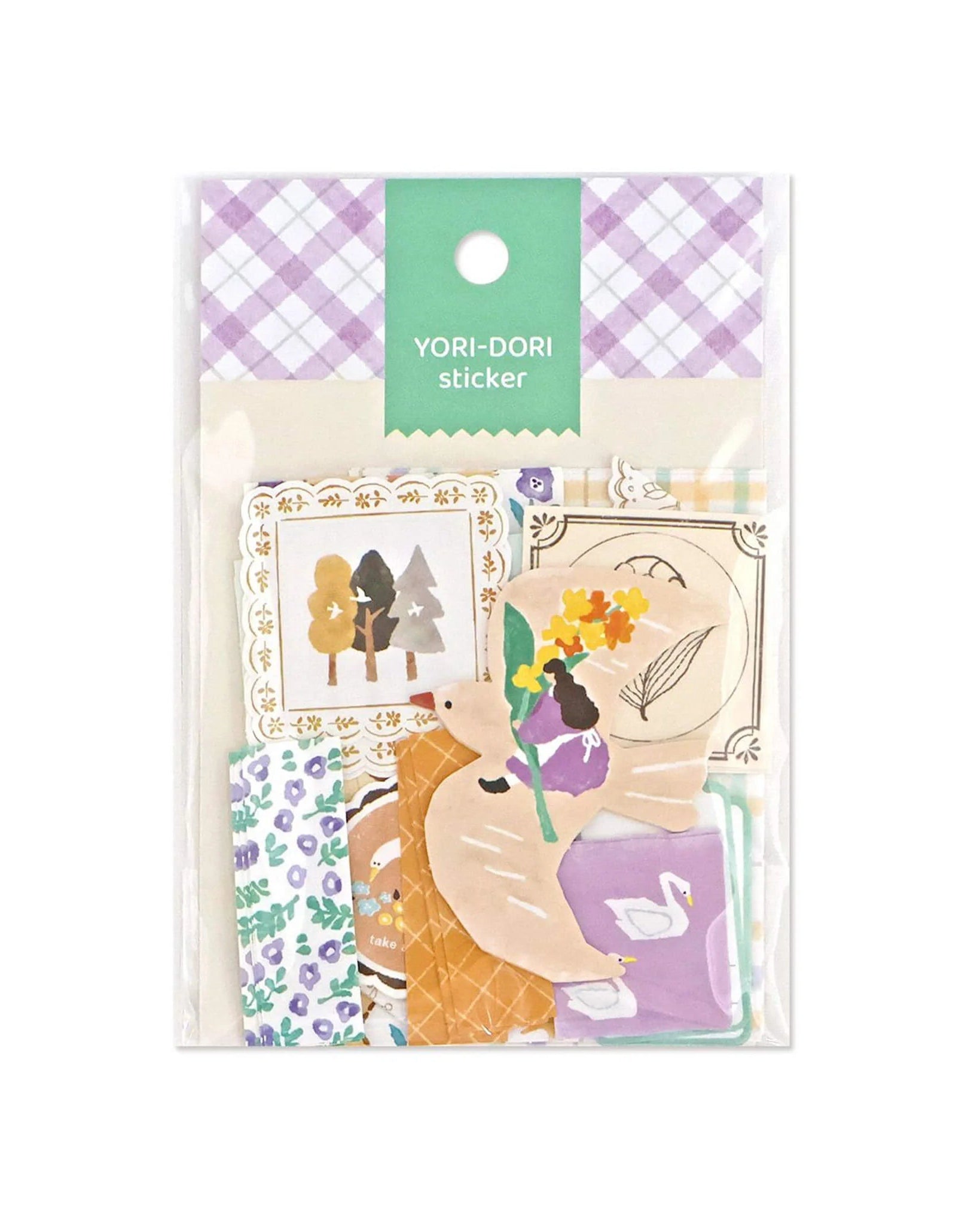 Ce set de stickers Yori-Dori Flake réunit une belle variété de motifs dans une palette de couleurs douces et harmonieuses. Vous y trouverez des formes dessinées à la main, des carrés libres, des bordures en dentelle, des motifs vichy pastel, des étiquettes ainsi que des cadres façon badges. L’ensemble est pensé pour être facilement mixé et superposé, afin de créer des pages équilibrées mais pleines de charme.