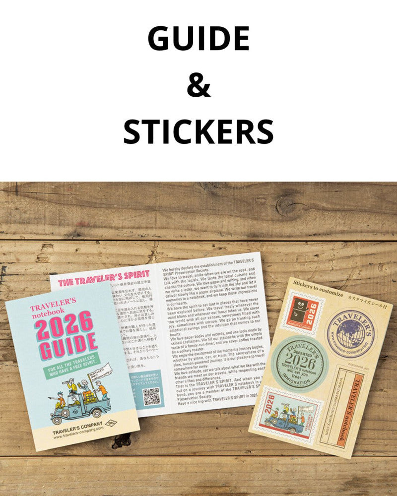 Imprimé sur papier MD, apprécié pour sa qualité d’écriture et sa résistance à l’encre, cet agenda est accompagné d’un guide 2026 et d’une planche de stickers pour personnaliser votre Traveler's Notebook.