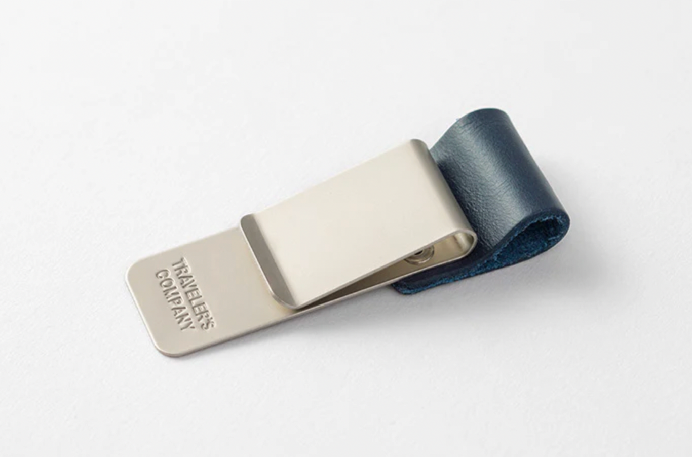 Ce porte-stylo à clip, conçu pour s'attacher au Traveler's notebook, est un accessoire pratique qui met fin à la recherche incessante de votre stylo dans vos poches. Fabriqué en cuir, ici dans sa teinte bleue, il dispose d'un passant qui peut accueillir des stylos d'un diamètre allant jusqu'à 12 mm et s'adapte parfaitement aux deux formats du Traveler's notebook, regular et passport.