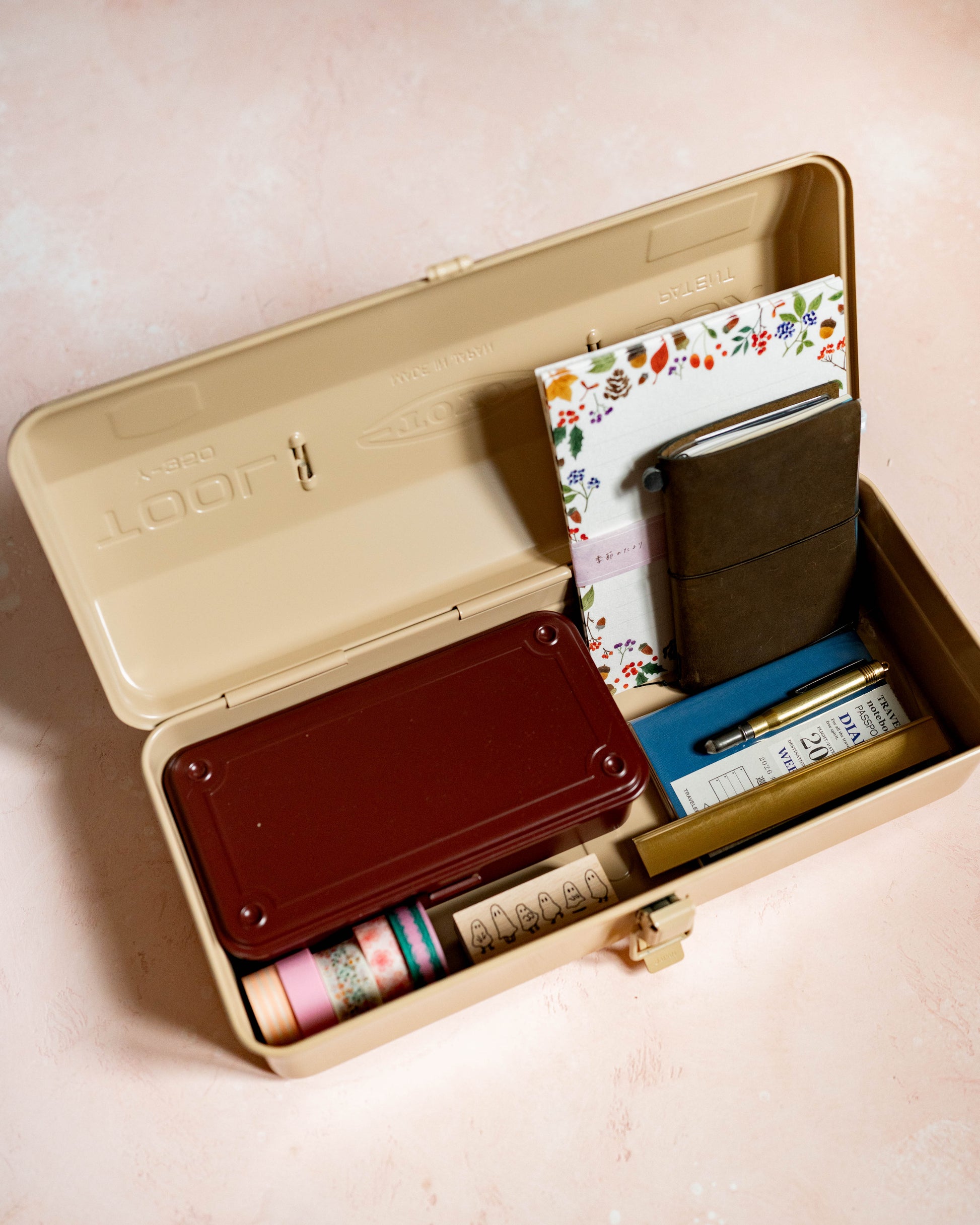 Fabriquée au Japon par Toyo Steel Co. Ltd, fondée à Osaka en 1969, la boîte à outils T-320 incarne le savoir-faire et le design industriel japonais. Réalisée d’une seule pièce d’acier embouti sans aucune soudure, elle est à la fois légère, robuste et durable.