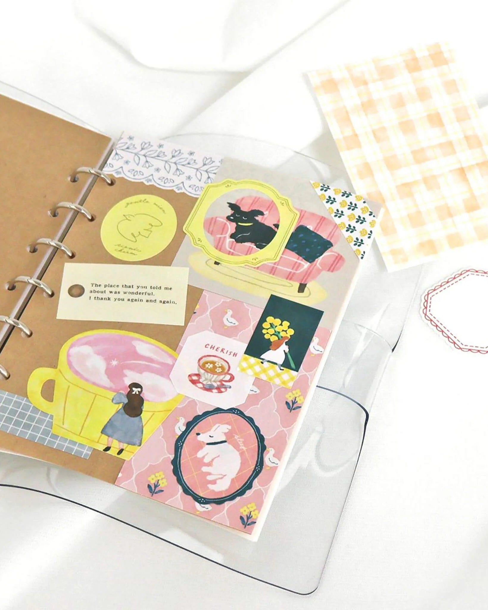 Les illustrations – filles, animaux, plantes, scènes de la vie quotidienne et gourmandises – racontent chacune une petite histoire et apportent une ambiance douce, chaleureuse et poétique à vos journaux, planners, cartes ou lettres.